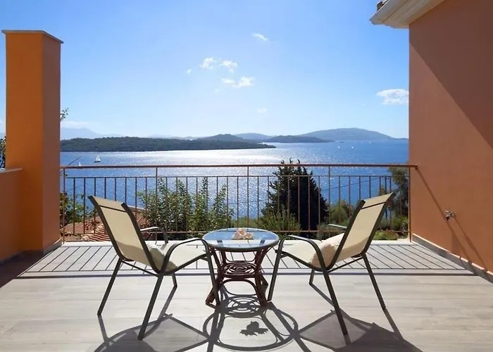 Villa Melias, Luxurious Villa With Superb View Of The Islands, 400 M From The Sea ligt op circa 4 km van Watervallen van Nidri en nodigt gasten uit om te ontspannen op een terras. Gasten kunnen genieten van wandelen en fietsen in de villa, gelegen op loopafstand van Sailinn Beach Club.